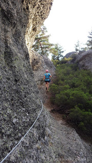 Una de las primeras ferratas en España que realizamos con sistema (LVC) Línea de vida continua. Encontraremos una ferrata fácil de recorrer tanto su línea principal como sus variantes, utilizando escalones y presas naturales, pero a cambio disfrutaremos con sus paisajes y formaciones imposibles. Encontraremos una ferrata bien delineada, por esas rocas y peñas esculpidas por el paso de los años y la erosión unidas entre ellas por pasarelas. Y en su final la tirolina la cual se necesita reservar. La Ciudad Encantada de la Sierra de Urbión, mares de pinos albares, pino negro y otras especies un bosque de ensueño y mágico que recuerda a mundos de hadas y fantasía. Disfrutando de su recorrido tanto a pie como por sus paredes, una ferrata y entorno que no dejara indiferente a nadie. | |||